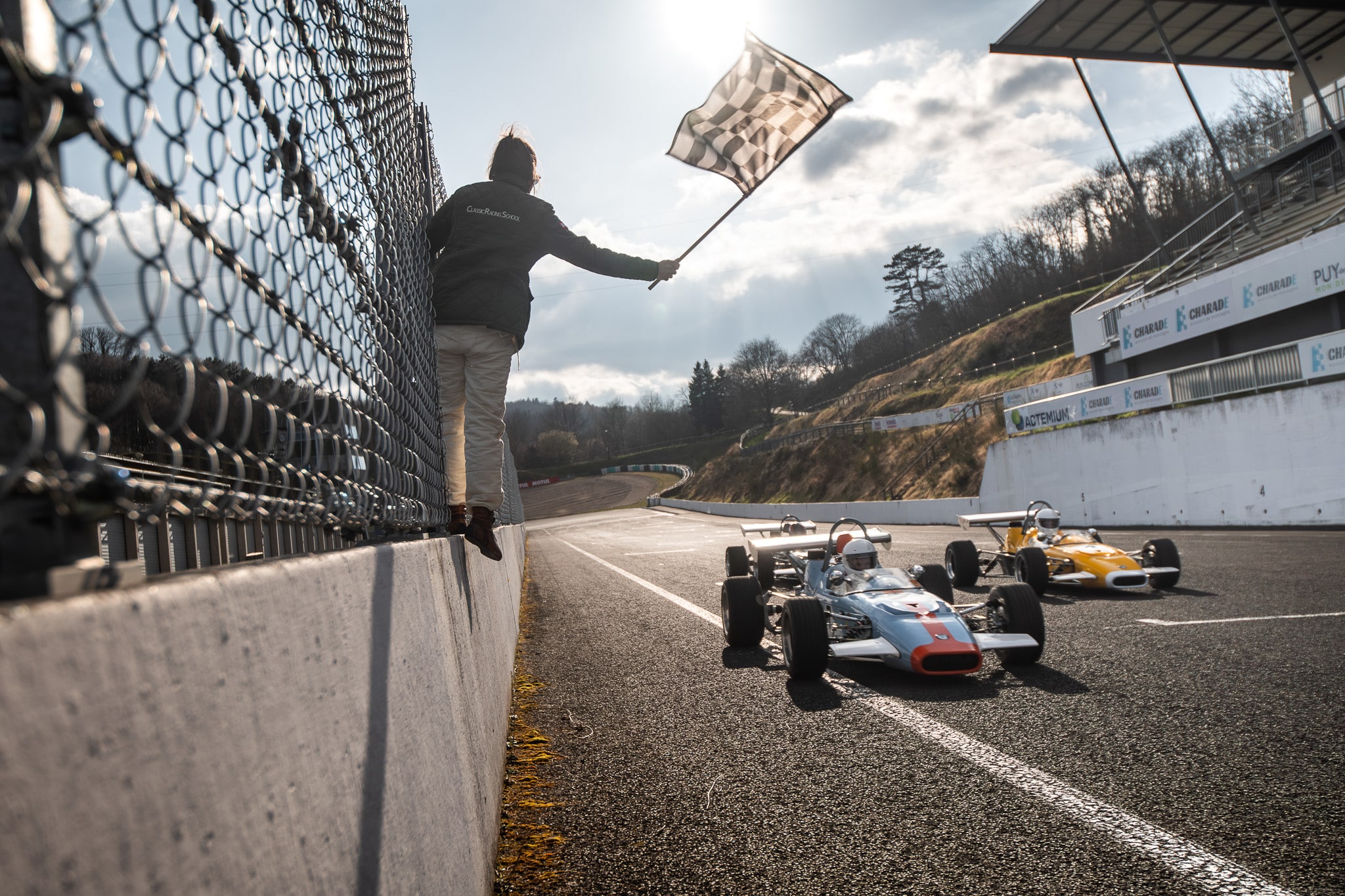Take the wheel of your historic single-seater and dive into the world of the sixties: manual gearbox, no driver aids, raw sensations. You drive 5 sessions of 15 minutes on the Charade circuit — 1 hour 15 minutes of track time in total.
